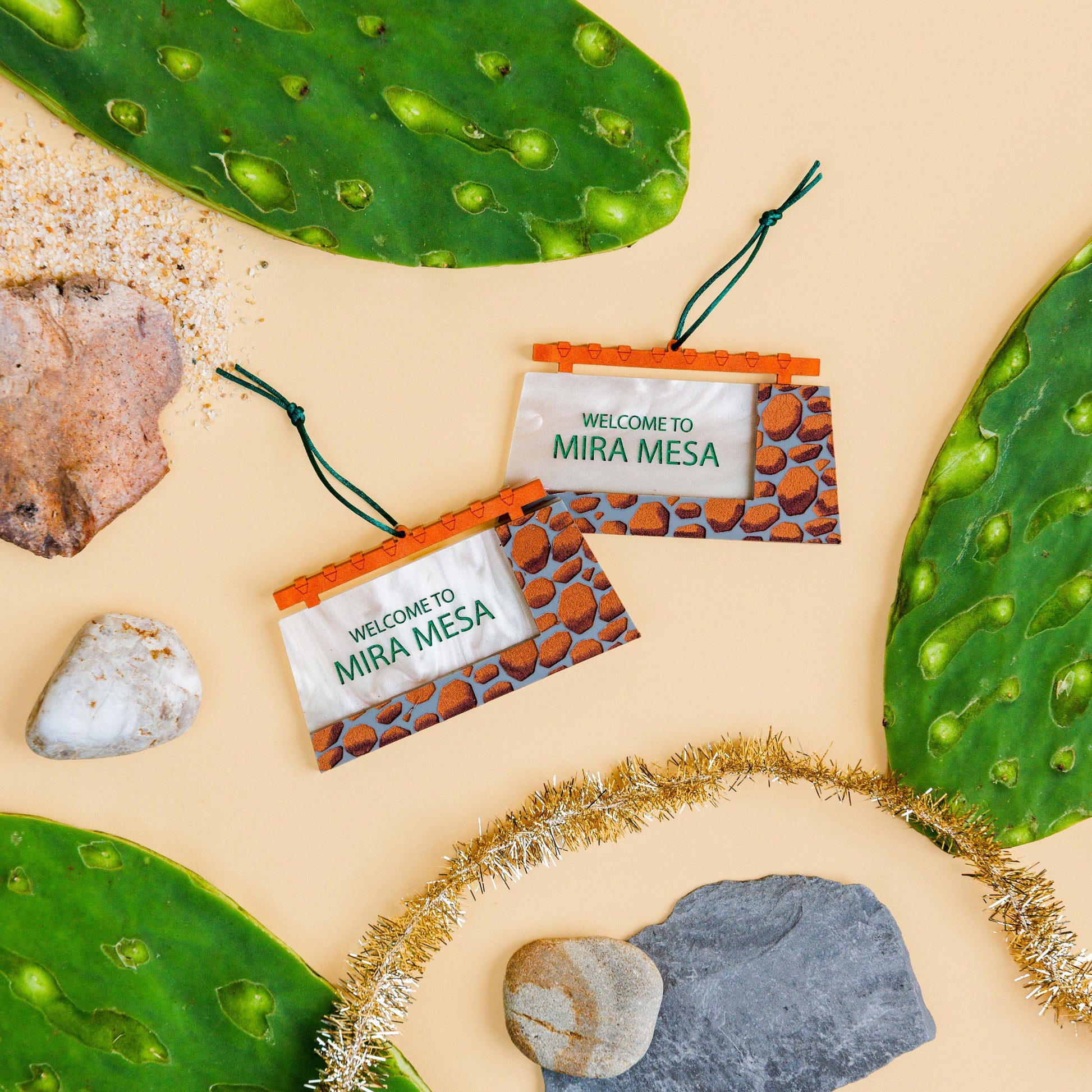 Add a small piece of the city to your home with the Mira Mesa ornament! This miniature replica of the neighborhood sign is the perfect addition to your holiday decor.